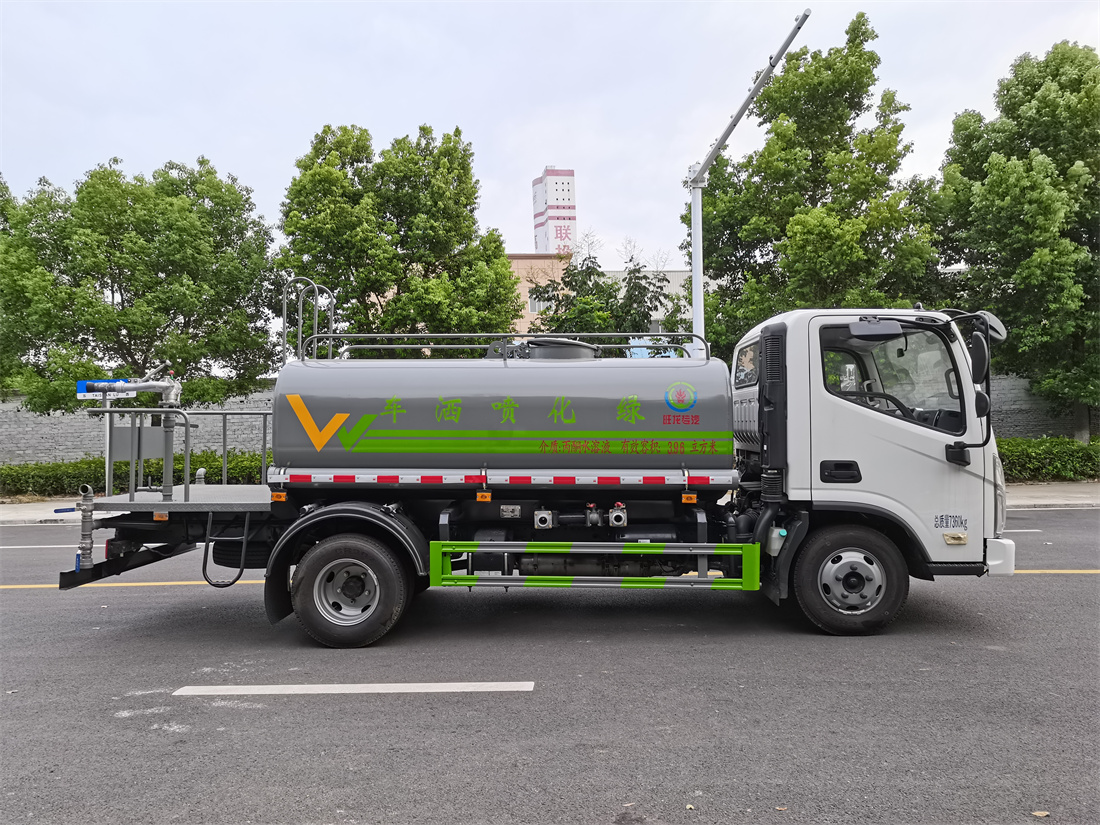 灑水車性能特點:前沖(噴)后灑,帶側噴,罐體后帶工作平臺,平臺上安裝綠化灑水炮,灑水炮可360旋轉,可連續調成直沖狀、大雨、小雨、毛毛雨,帶安全護欄,配備全國質量評比**名的杭州威龍大功率專用  灑水泵,泵可自吸自排,安裝過濾網,帶消防接口,可通過消防栓進水,帶自流閥,隨車選裝20米綠化卷盤,可噴灑農藥。