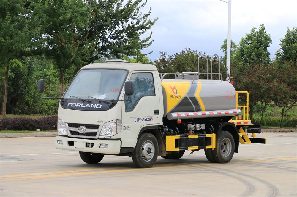 灑水車前裝有鴨形噴嘴或圓頭沖嘴,后面裝有圓柱開灑水噴嘴或蓮蓬頭噴嘴,后部有一工作平臺,裝配有水炮。后部還可裝8個噴嘴(選裝)。