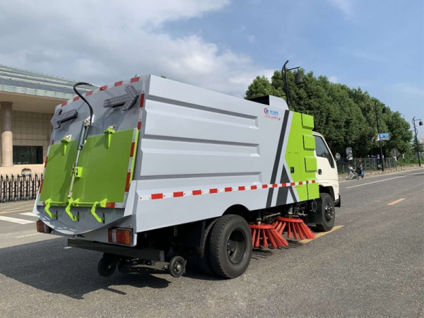 1.采用吸掃混合的方式收集垃圾,濕式除塵、電液,液壓傾翻卸料的作業(yè)方式對路面進行清掃作業(yè)。