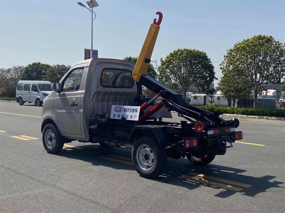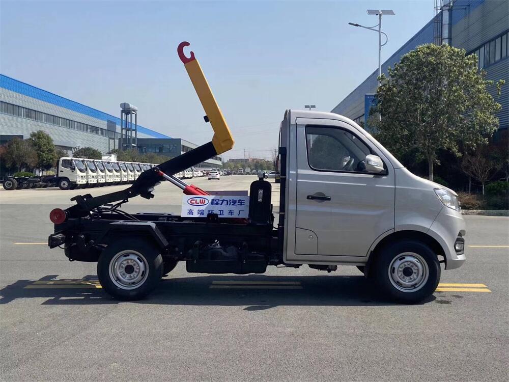 勾臂式垃圾車(chē)(車(chē)廂可卸式垃圾車(chē))介紹: 車(chē)廂可卸式垃圾車(chē)又叫拉臂式垃圾車(chē),是一種采用高新設(shè)計(jì)可伸縮的鉤臂,實(shí)現(xiàn)垃圾廂的二次吊裝,自吊上放下,可自行傾倒垃圾的環(huán)衛(wèi)設(shè)備。 拉臂式垃圾車(chē)結(jié)構(gòu)簡(jiǎn)單,操作穩(wěn)定方便,裝卸效率高,機(jī)械化程度高,節(jié)省人力。鉤臂垃圾車(chē)一車(chē)可帶多個(gè)垃圾廂,在裝卸的運(yùn)輸過(guò)程中可有效地避免二次污染。 拉臂垃圾車(chē)采用高新設(shè)計(jì)可擺動(dòng)的鉤臂,垃圾箱由框架、開(kāi)啟油缸、滑輪、后門(mén)和若干加強(qiáng)框架與鋼板焊接而成。調(diào)換貨廂快捷方便,貨廂上帶蓋(倒垃圾時(shí)可翻開(kāi)),鉤臂垃圾車(chē)?yán)鴰w可選用碳鋼、不銹鋼材質(zhì)、內(nèi)部采取環(huán)氧樹(shù)脂防腐處理,改裝部分與原車(chē)底盤(pán)為可分離式,維修方便且保持了原車(chē)的機(jī)動(dòng)性及行駛性能。