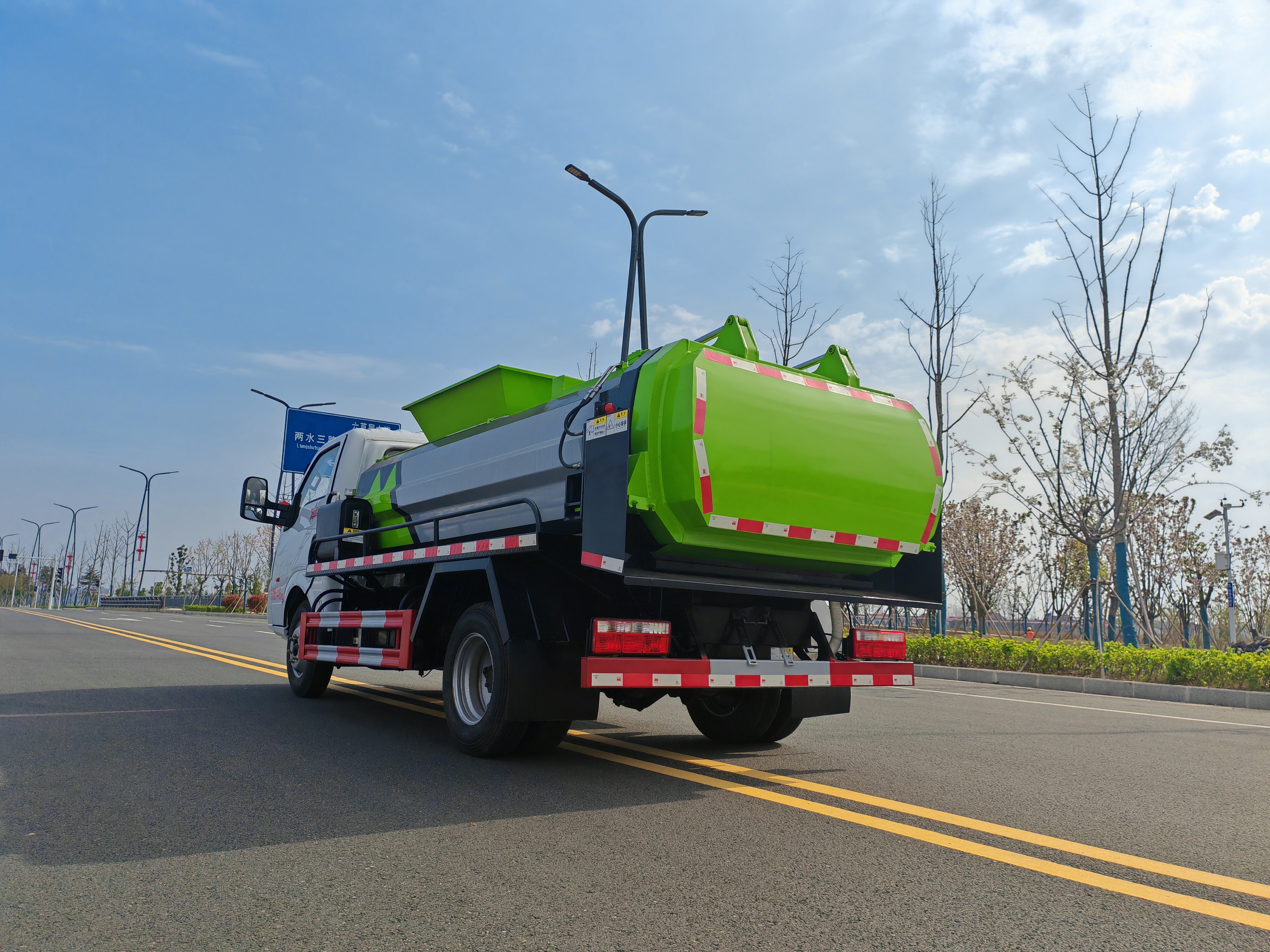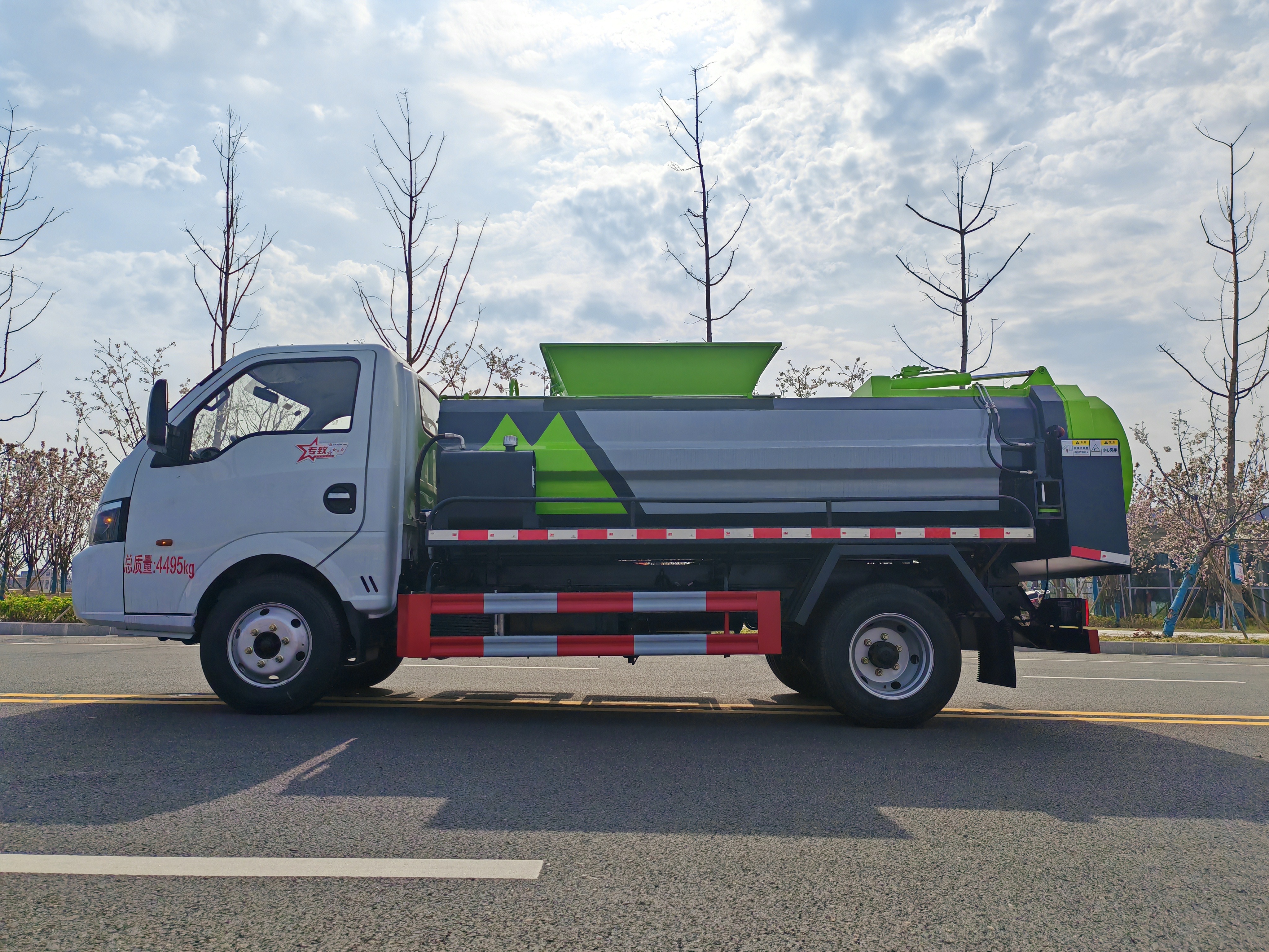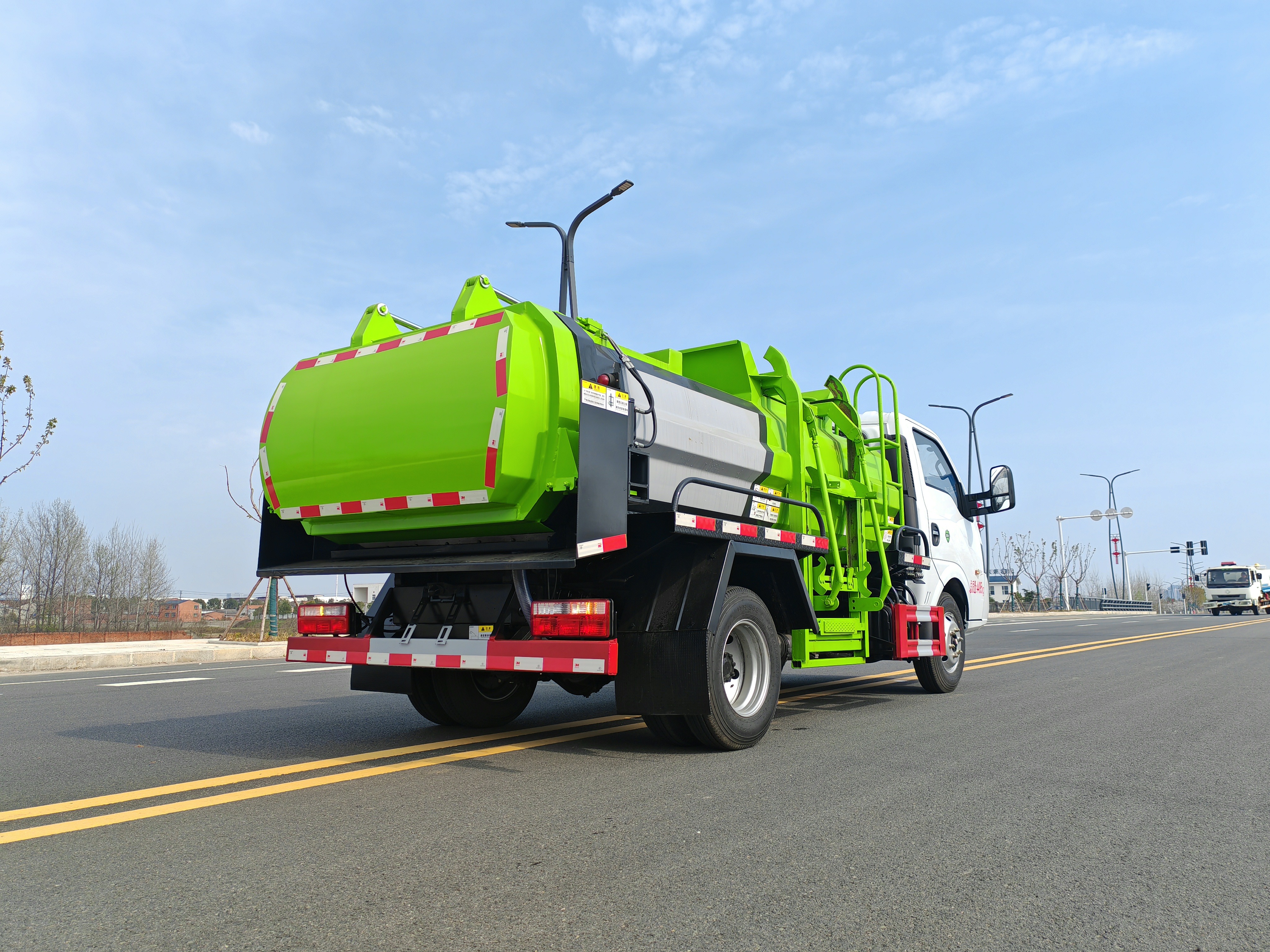 上裝配置:采用Q710高強鋼,邊2底4,輕量化設計,大容量,上藍牌,不超重,高度可選可進地下室高度。加強型方形罐體,采用國內(nèi)知名品牌液壓系統(tǒng)(國產(chǎn)知名油泵、湖南長沙國產(chǎn)知名多路閥、餐廚專用定制油缸、浙江嘉善取力器),①選裝拉桿或鏈條式提升機,可掛120L/240L標準塑料垃圾桶。②后蓋液壓開啟、液壓鎖緊,后蓋帶有密封條,搭配插銷可調(diào)節(jié)式液壓鎖緊保證滴水不漏。③中置雙頂舉升卸料,卸料角度可根據(jù)需求調(diào)節(jié)。④帶無線遙控操作更方便。