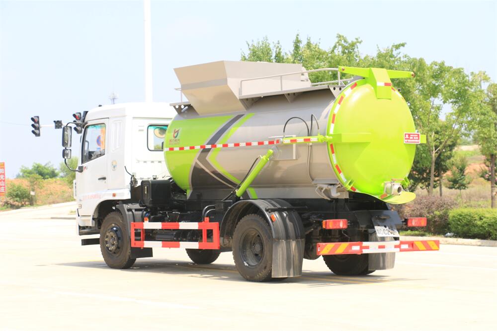 上裝配置:罐體容積10m3,配備120L/240L掛桶提升翻轉機構,液壓系統,后蓋液壓鎖緊開啟,罐體可以舉升自卸,尾部帶自流閥;用于運輸液態垃圾,其特點操作簡單,密封性好,無泄漏,無異味;可選裝固液分離功能,推板擠壓功能,常用于餐館的垃圾轉運處理。
