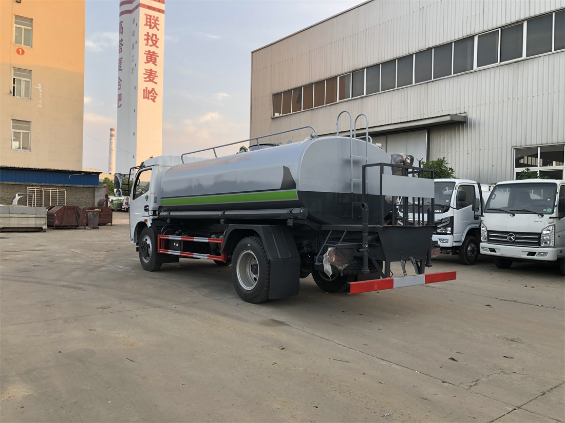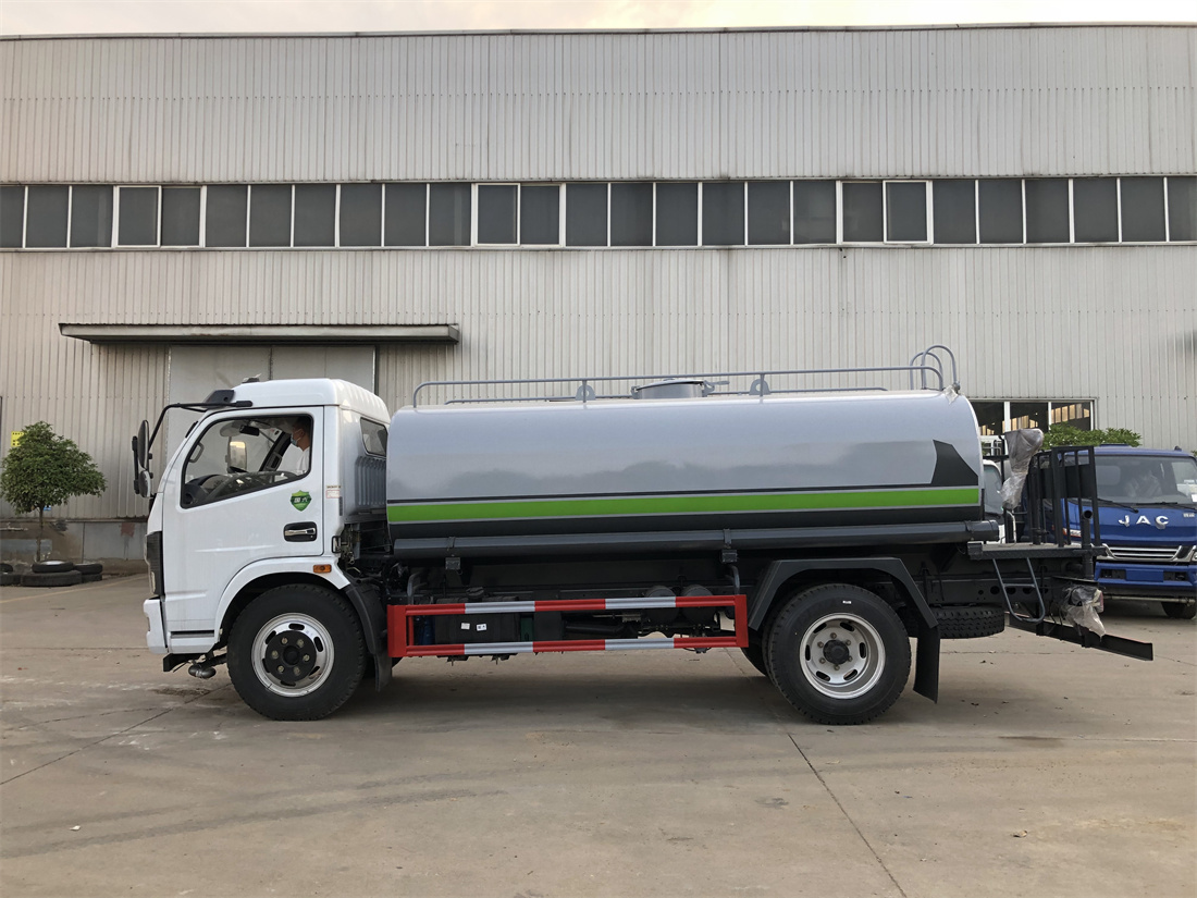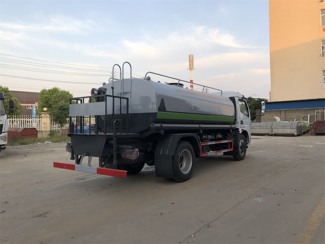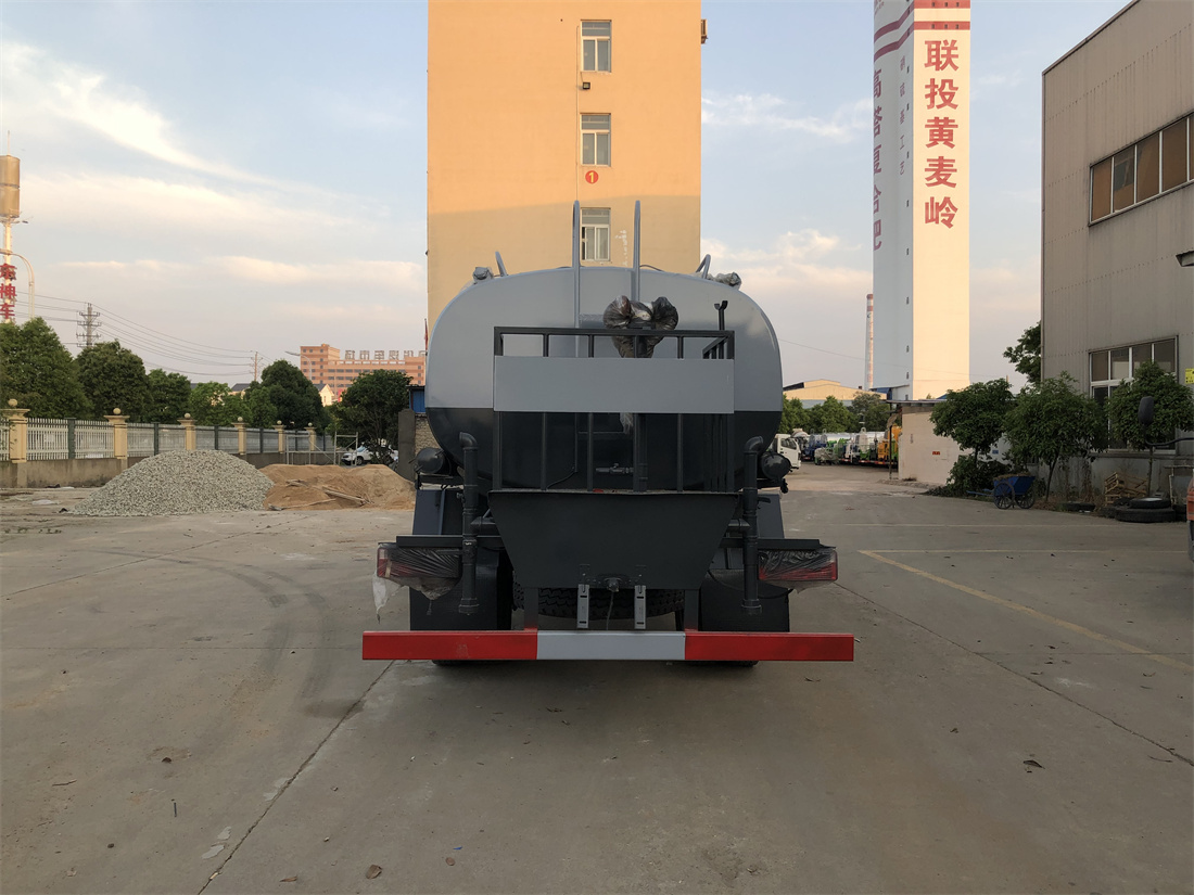灑水車前裝有鴨形噴嘴或圓頭沖嘴,后面裝有圓柱開灑水噴嘴或蓮蓬頭噴嘴,后部有一工作平臺,裝配有水炮。后部還可裝8個(gè)噴嘴(選裝)。