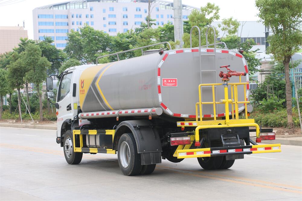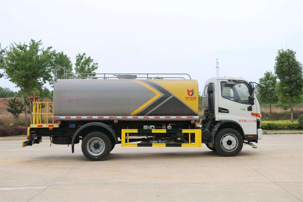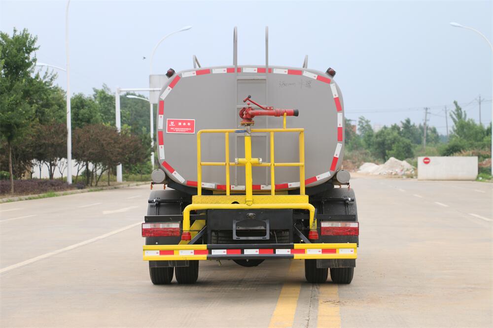 灑水車前裝有鴨形噴嘴或圓頭沖嘴,后面裝有圓柱開灑水噴嘴或蓮蓬頭噴嘴,后部有一工作平臺,裝配有水炮。后部還可裝8個噴嘴(選裝)。