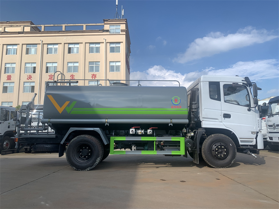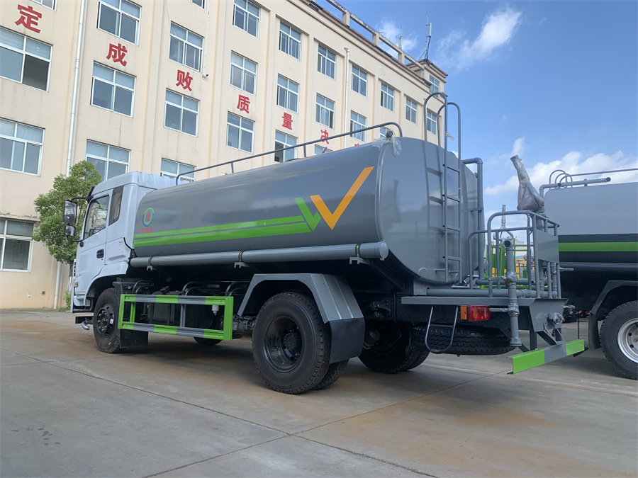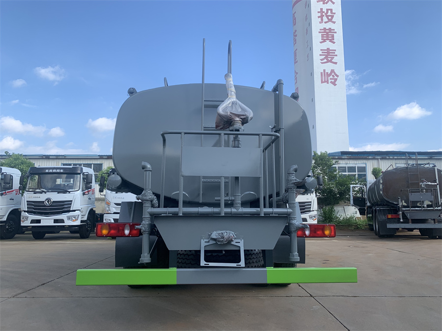 灑水車前裝有鴨形噴嘴或圓頭沖嘴,后面裝有圓柱開灑水噴嘴或蓮蓬頭噴嘴,后部有一工作平臺(tái),裝配有水炮。后部還可裝8個(gè)噴嘴(選裝)。