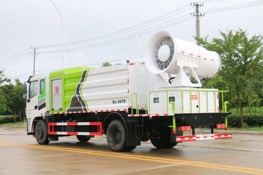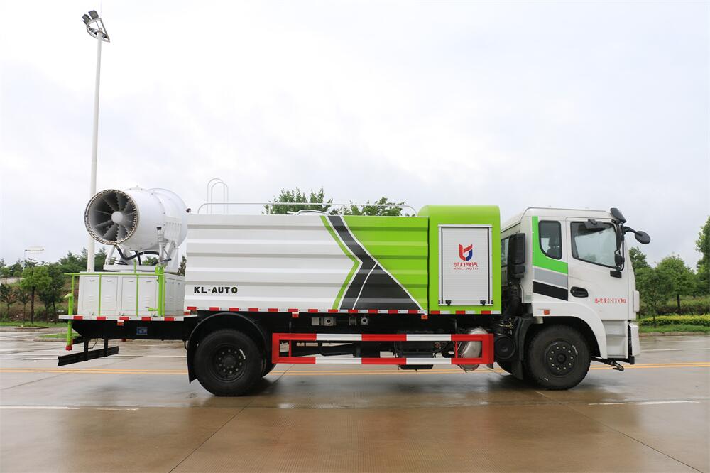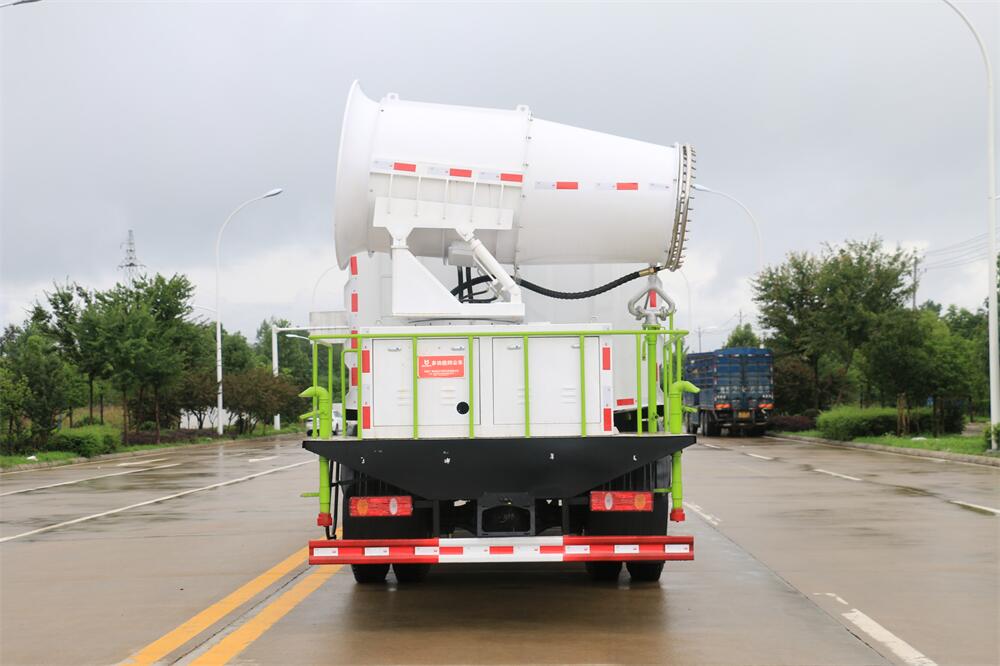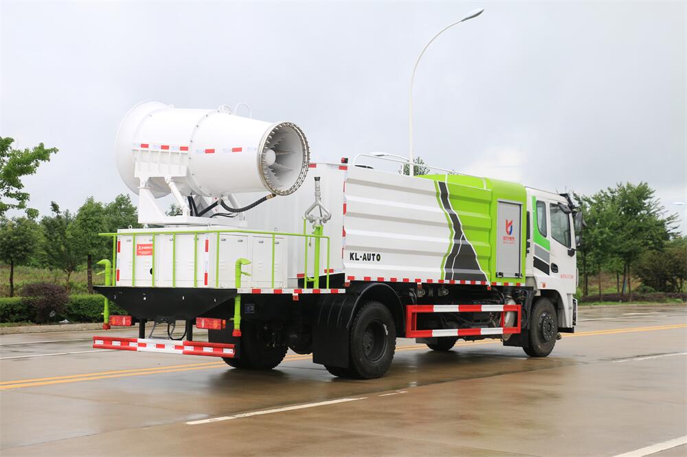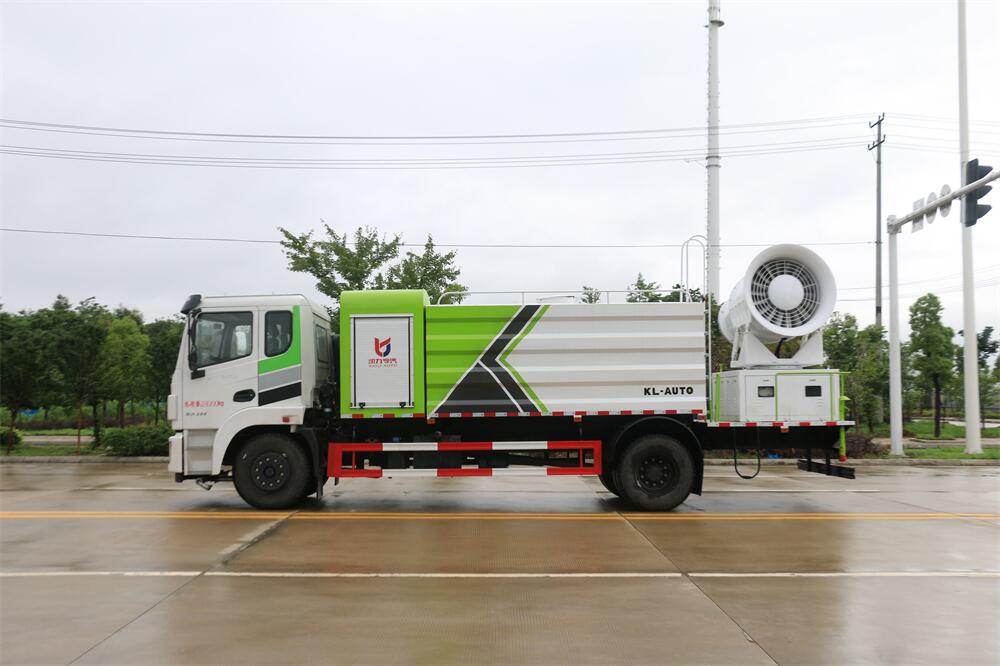 上裝配置:罐體容積為 12立方,選配風(fēng)送式霧炮機(jī)組射程30米、40米、50米、60米、80米、100米、120米霧炮,罐體鋼板為4mm碳鋼Q235材質(zhì),罐內(nèi)隔板具有防波作用,以減輕汽車(chē)行駛時(shí)罐體液體沖擊,罐體及整車(chē)外形尺寸按照公告。帶大功率專(zhuān)用灑水泵,泵可自吸自排,整車(chē)前沖、后灑、側(cè)噴、帶65消防接口,后平臺(tái)配CLW-50、CLW-60、CLW-80、CLW-100、CLW-120型風(fēng)送式霧炮機(jī)組;罐體前封頭配大功率柴油發(fā)電機(jī)組;前封頭帶水位計(jì),后平臺(tái)主管路帶1寸澆花接口,后爬梯。帶兩根輸水管及陰陽(yáng)端。罐體顏色:銀/灰/綠,罐體兩側(cè)噴“多功能抑塵車(chē)”字樣,貼反光標(biāo)示。