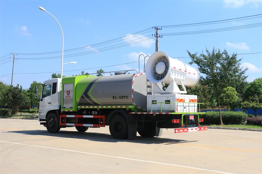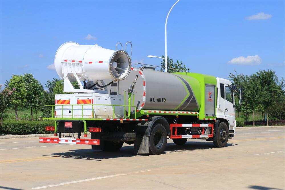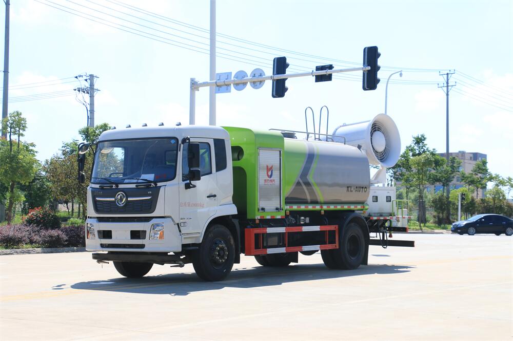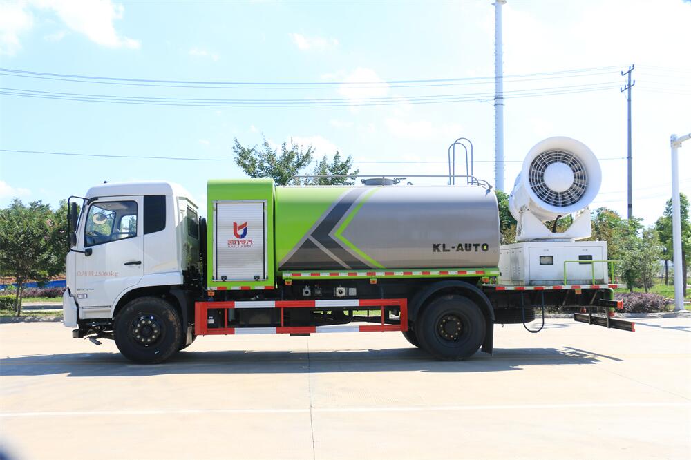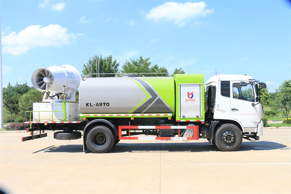 上裝配置:罐體容積為 12立方,選配風(fēng)送式霧炮機組射程30米、40米、50米、60米、80米、100米、120米霧炮,罐體鋼板為4mm碳鋼Q235材質(zhì),罐內(nèi)隔板具有防波作用,以減輕汽車行駛時罐體液體沖擊,罐體及整車外形尺寸按照公告。帶大功率專用灑水泵,泵可自吸自排,整車前沖、后灑、側(cè)噴、帶65消防接口,后平臺配CLW-50、CLW-60、CLW-80、CLW-100、CLW-120型風(fēng)送式霧炮機組;罐體前封頭配大功率柴油發(fā)電機組;前封頭帶水位計,后平臺主管路帶1寸澆花接口,后爬梯。帶兩根輸水管及陰陽端。罐體顏色:銀/灰/綠,罐體兩側(cè)噴“多功能抑塵車”字樣,貼反光標(biāo)示。