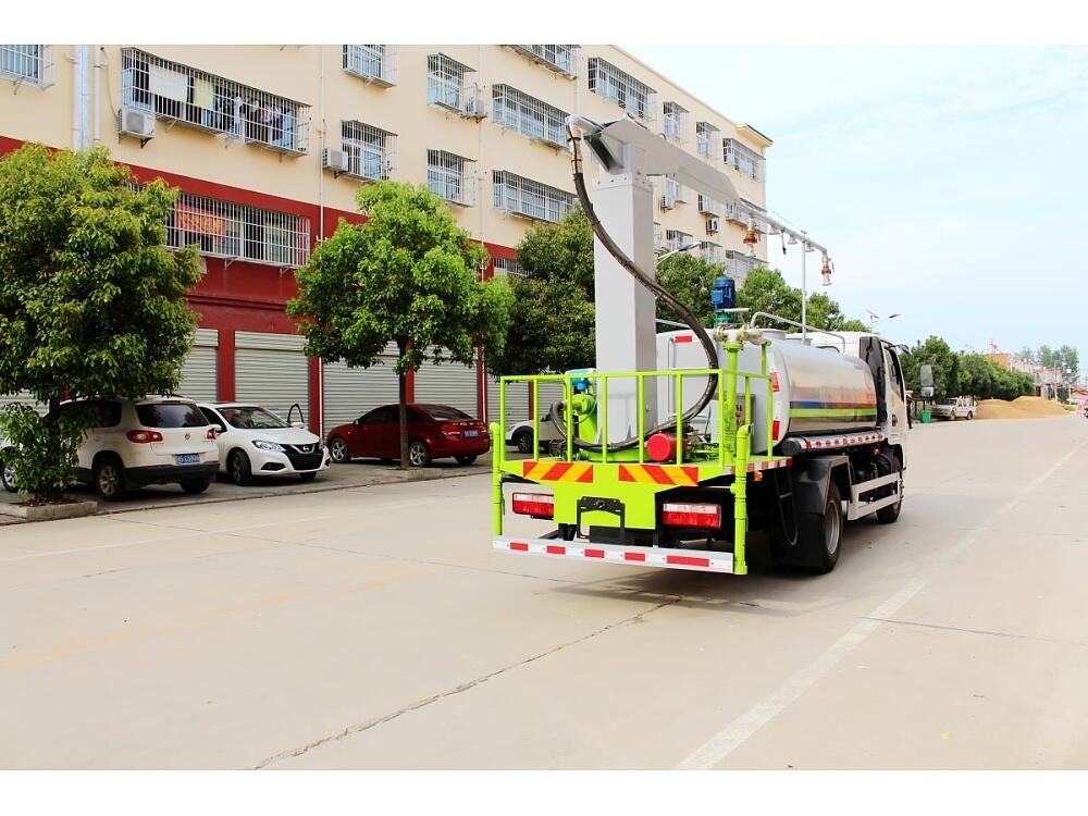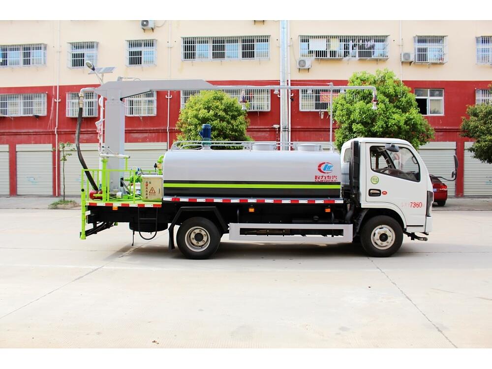 東風小多利卡抑塵固化劑噴灑車上裝配置:罐體為5立方圓形罐,罐體內(nèi)部做防腐,帶加熱功能,前沖、后灑、側(cè)噴、高炮,抑塵噴灑桿(帶旋轉(zhuǎn)伸縮功能)。東風小多利卡抑塵固化劑噴灑車噴灑桿離地3.5-5米 ,后部平臺帶8KW副發(fā)電機組,罐體內(nèi)部加兩個1.5KW電動馬達(帶攪拌功能)罐體噴漆上白下藍,平臺和噴灑桿藍色。遙控操作噴灑桿上下左右旋轉(zhuǎn),國內(nèi)知名品牌回轉(zhuǎn)支撐,大品牌油缸。