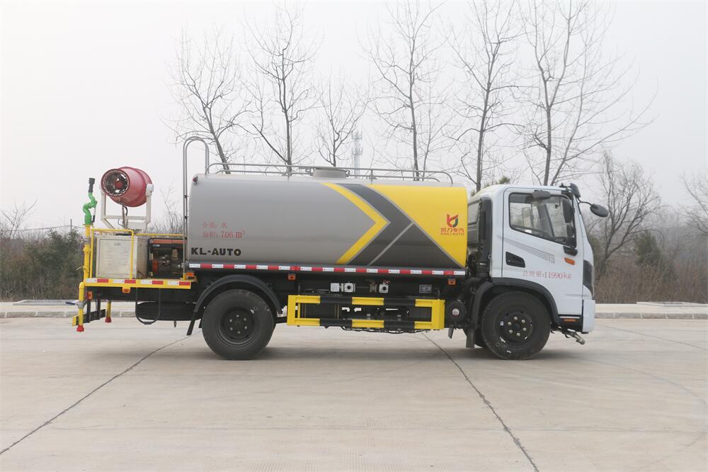 上裝配置:罐體容積 9立方,風送式霧炮機組30米,40米選擇,罐體采用國標Q235碳鋼材質(zhì),罐體厚度4MM,前后封頭5MM加厚型,罐體內(nèi)雙層隔板具有防波蕩作用,以減輕汽車行駛時罐內(nèi)液體沖擊;灑水車整車及外形尺寸嚴格按照**機動車公告制作而成;裝配大功率專用灑水泵,前沖、后灑、側(cè)噴、后平臺帶綠化灑水炮,灑水炮可全方位旋轉(zhuǎn),可連續(xù)調(diào)成直沖狀、大雨、小雨、毛毛雨;配消防接口,自流閥,濾網(wǎng),帶自吸自排功能。前封頭帶水位計,后平臺主管路帶1寸澆花接口,后爬梯,帶1個消防接頭,帶1個自流閥,1個過濾裝置,其余標配。