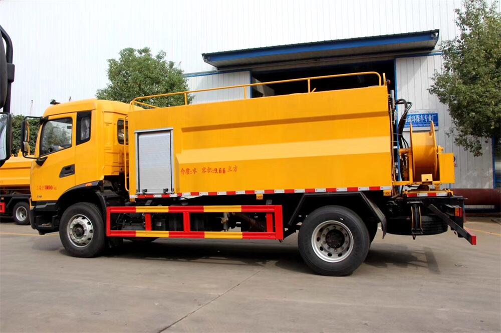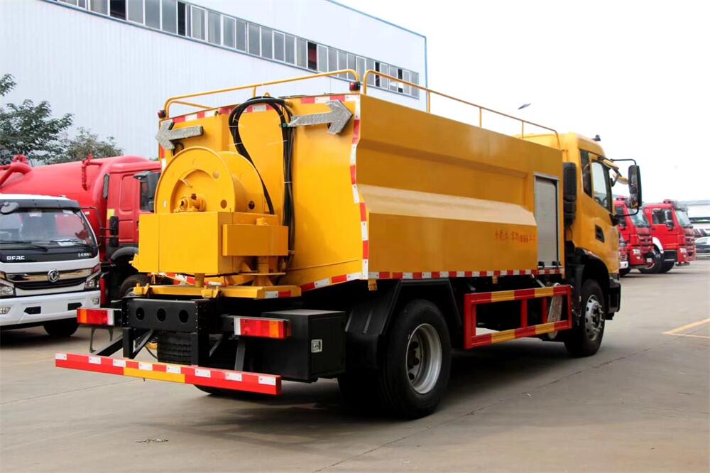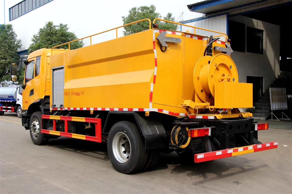 上裝配置:清水罐約 4立方,污水罐約 8 立 方;罐體 8mm 厚,封頭 8mm 厚,水罐、污罐可 互通,用 100 球閥**開關;清洗部份采用天 津通潔高壓泵,壓力 19Mpa,流量 215L/min, 配 80 米直徑 22 高壓管帶液壓卷盤;吸污部份 采用濰柴375馬力副發(fā)動機帶山東SK-30水循 環(huán)泵(副發(fā)自帶),吸污罐帶舉升,后封頭焊 死(可選擇后封頭全開),尾部加裝一個 600mm 快開,罐體后尾部一個 DN150 排污口球閥,一 個 DN100 吸污球閥帶出口盤,一個視污窗,一 根 10m 吸污管,一套陰陽端,壓力表,防溢 閥,箭頭燈,工具箱,淋管裝置,高壓泵帶氣 吹水。配一個 4.5 公斤水雷噴頭,另帶一個 80 公分手持洗車噴頭。