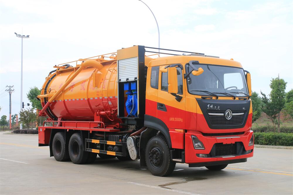 22方清洗吸污車-東風天龍22方清洗吸污兩用車-帶副發動機 圓罐