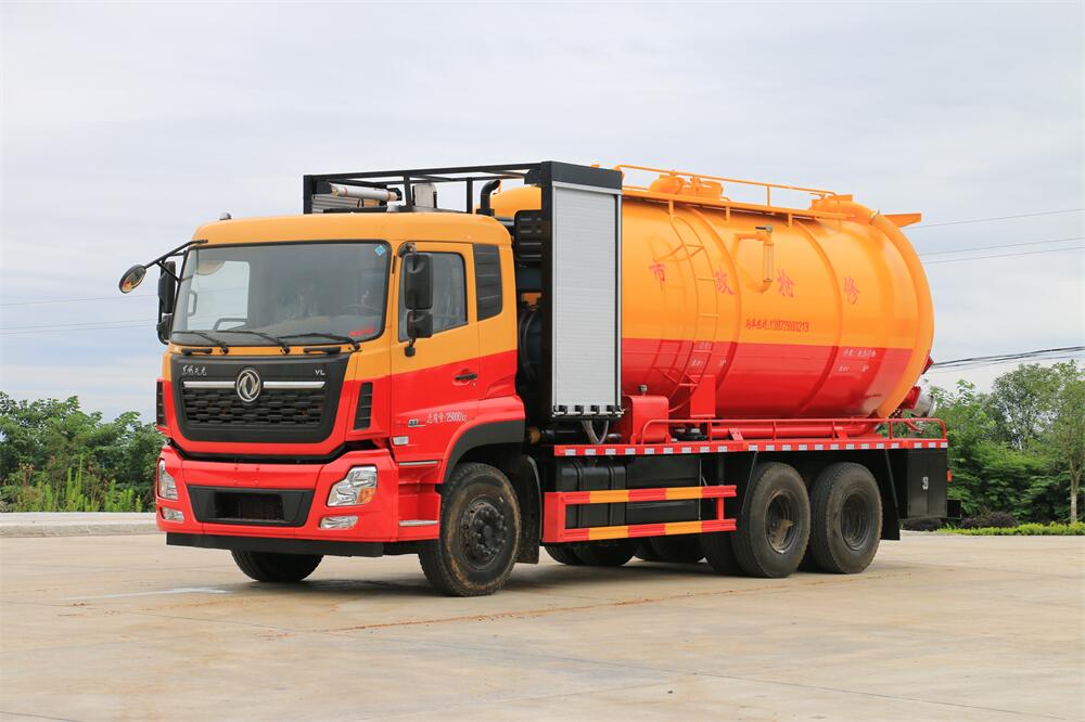 上裝配置:罐體容積為 22 立方(水污可自由 分配),罐體 8mm 厚,封頭 8mm 厚,水罐、污 罐可互通,用 100 球閥**開關;清洗部份采 用品孚高壓泵,壓力 20Mpa,流量 330L/min, 配 80 米直徑 25 高壓管帶液壓卷盤;吸污部份 采用濰柴420馬力副發動機帶山東SK-42水循 環泵(副發自帶),吸污罐帶舉升,尾部加裝 一個 600mm 快開,罐體后尾部一個 DN150 不銹 鋼排污口,一個 DN150 不銹鋼偷排,兩個 DN100 吸污球閥帶出口盤,一個視污窗,兩根 10m 吸 污管,一套陰陽端,壓力表,防溢閥,箭頭燈, 工具箱,淋管裝置,高壓泵帶氣吹水,配一個 9 公斤水雷噴頭,另帶一個 80 公分手持洗車 噴頭。