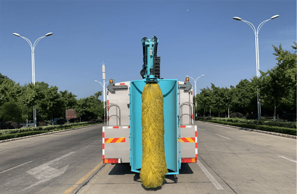 HCQ5250TXQDF6隔音屏清洗車的基本工作原理是利用安裝在回轉(zhuǎn)支承的折疊筆架上的直徑為1000MM,長2000MM的高速旋轉(zhuǎn)(385R/MIN)的圓柱滾刷一邊噴射洗滌劑與清洗,一邊滾刷,能連續(xù)清洗2M寬的墻面。由于洗刷都安裝在回轉(zhuǎn)支承上可以左右旋轉(zhuǎn),所以墻面清洗車可在不換向的情況下,洗刷兩邊的墻面。此外洗刷還可以清洗路標、廣告牌、高架橋等。本隔音屏清洗車的液壓、電氣元件采用國際**產(chǎn)品,性能優(yōu)良、工作可靠。