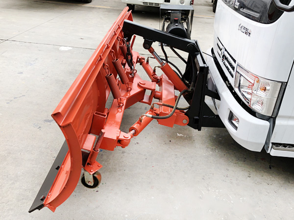 除雪鏟安裝時,將除雪鏟與汽車對正,操縱汽車前端的快速連接架與雪鏟連接架對準(zhǔn),把雪鏟的液壓單元與汽車車載24v電源接通,將雪鏟的連接架與汽車的快速連接架連接,并用銷子將雪鏟與快速連接架固定。雪鏟安裝后,調(diào)整雪鏟左右偏轉(zhuǎn)油缸,使雪鏟鏟面與車輛前進(jìn)方向形成一定的夾角,以利于除雪時將雪拋向路邊。