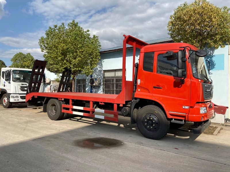 東風天錦單橋平板運輸車 天錦新款VR排半駕駛室 排放:國五新規 發動機:風神180馬力 變速箱:陜齒8檔 前后橋:145加強后橋 可選軸距:4.5/5米軸距 輪胎:900-20鋼絲胎(無備胎) 大梁:280雙層大梁 整車對應尺寸:8600/9000*2550*2800 車型亮點:ABS防抱死系統 . 剎車間隙自動調整臂、防飛濺、遙控鑰匙,電動門窗。 上裝采用五毫米花紋鋼板,100*100方鋼做橫梁,加強雙簧爬梯,可拉15噸以下挖機。 可選裝配置:液壓全自動爬梯,折疊型加長型液壓全自動爬梯,可加裝兩邊伸展,一邊可伸縮30公分。