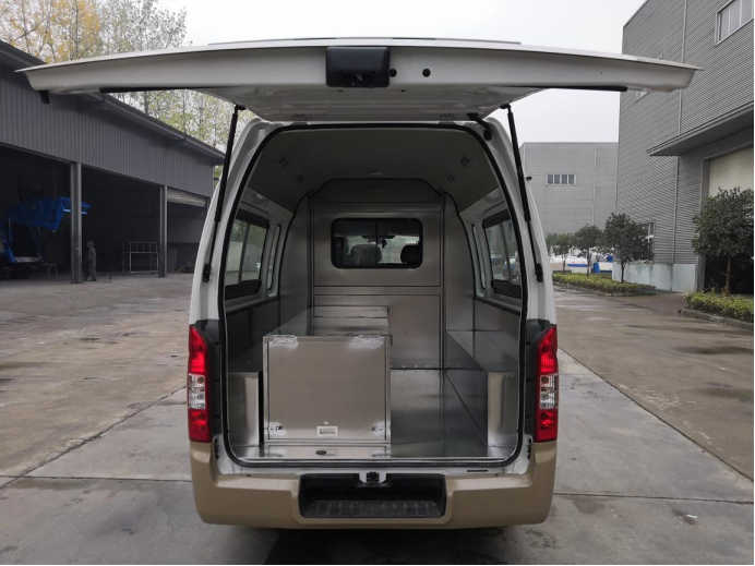 產品簡介 1. 主要配置:前空調,前暖風,電動車窗,ABS+EBD, 遙控鑰匙2. 改裝部分采用304L不銹鋼制作,中間不銹鋼隔墻安裝拉窗,不銹鋼地板,不銹鋼常溫棺不銹鋼擔架,加兩側玻璃下不銹鋼裝飾 ,根據(jù)您的要求設計改裝方案,模板一次成型,隔墻密封,拒串味。可以廠家自提,也可以付定金貨到付款。(冰棺選裝,后空調選裝,可視系統(tǒng)選裝,對講系統(tǒng)選裝)
